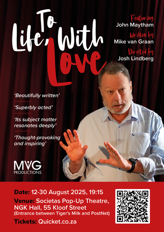 The pop-up Societas Theatre in the NGK Hall in Kloof Street, was the venue for a 3-week run of TO LIFE, WITH LOVE from 8-30 August after which it played host to I CAN BUY MYSELF FLOWERS from 24-27 September. It will take a while for the venue to establish itself as a regular theatre venue but people who attended the shows enjoyed the vibrancy of the area, the safe parking and even the venue itself. Church infrastructure could be key to sustainable theatre livelihoods!